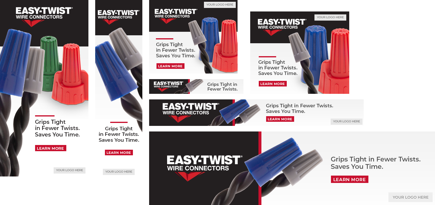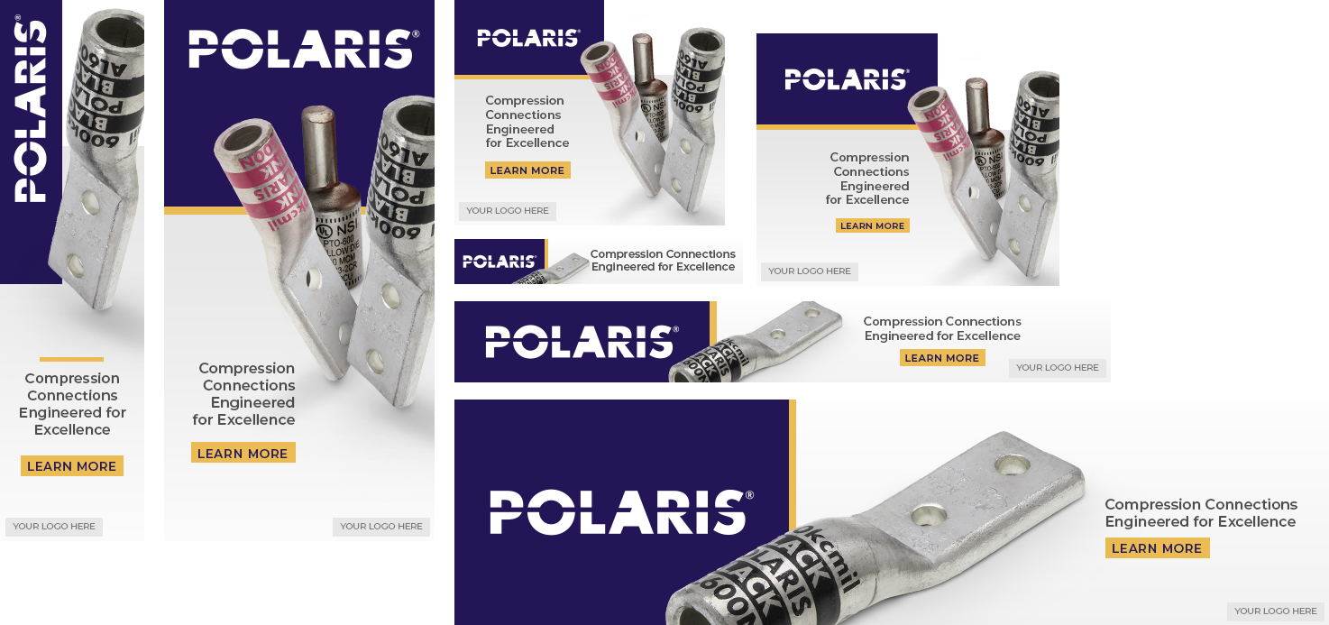 These groups of banner ads were designed for NSI’s many sub-brands to promote brand awareness and attract new or current customers. I had full creative freedom here, but kept a universal look across all brands so viewers may recognize them as being connected through NSI. I also helped elevate their brands by creating the various product groupings that could be reused in other projects.