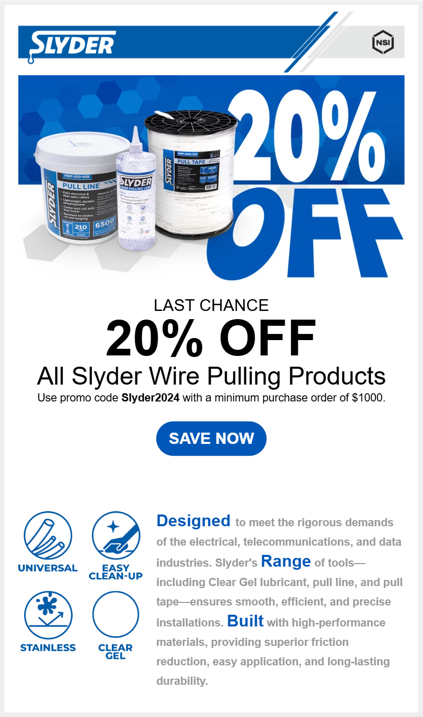The following are email campaigns I designed for NSI and Next Level Distribution. My primary goal when working on these was to creat eye-catching, but effective layouts that were easily digestible on any device.