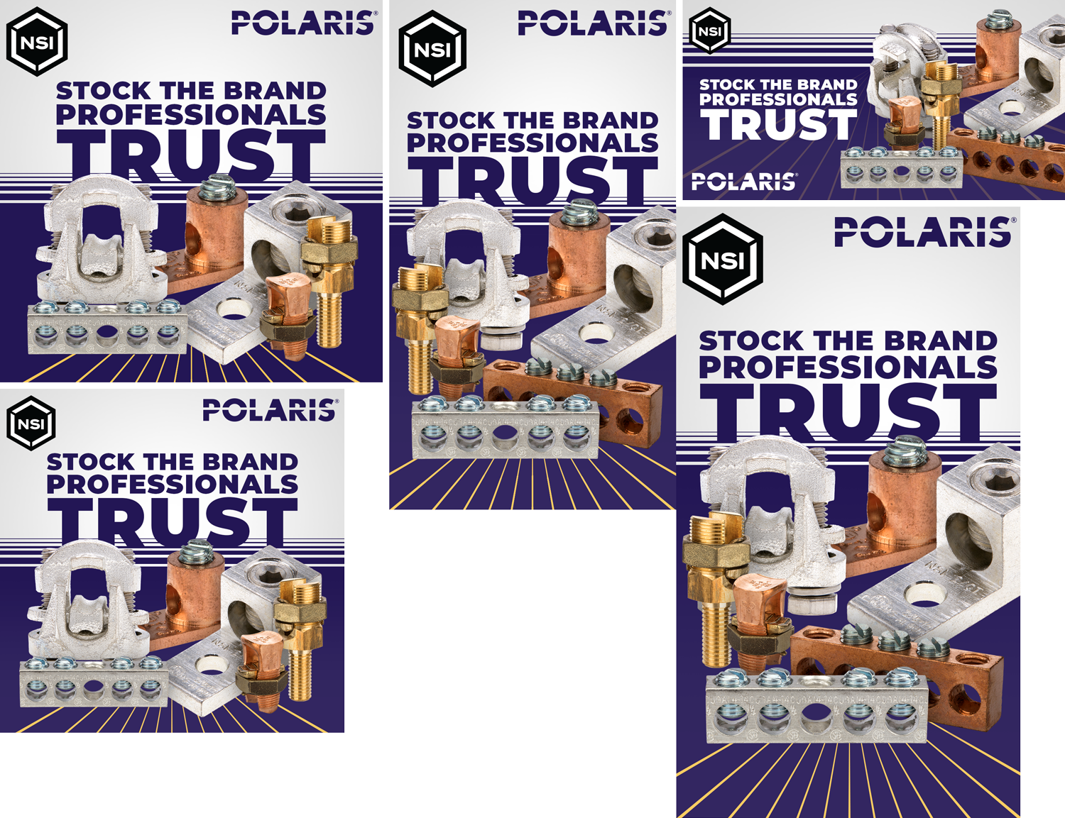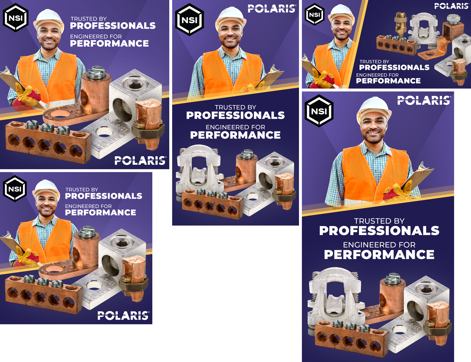 This is a series of static and animated digital advertising campaigns I did for the Polaris brand featuring their new mechanical connectors for electrical installations. The campaign was split into two parts, one to introduce the new line and the other to explain the benefits to customers. The introduction banners design approach was to focus on grabbing attention with an exciting graphic. The other group featured more lifestyle and professional imagery to help build trust. These banners were used to complement a separate paragraph of text followed by a call-to-action button featured on Google and LinkedIn. Due to file limitations on LinkedIn, the GIFs had to be lmited to simple pop-in animations.